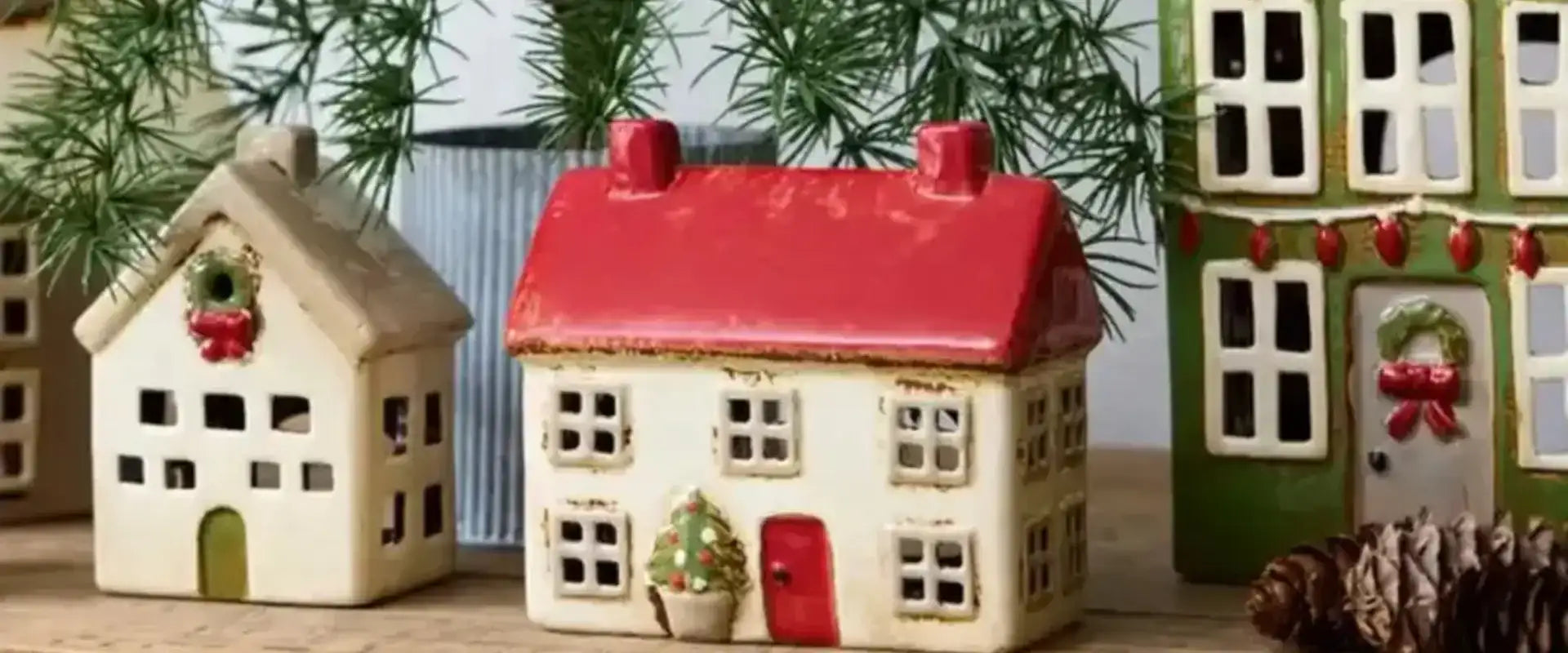 Create a magical village with our traditional tealight houses, designed to resemble festive scenes each house has intricate details and hand-painted features.